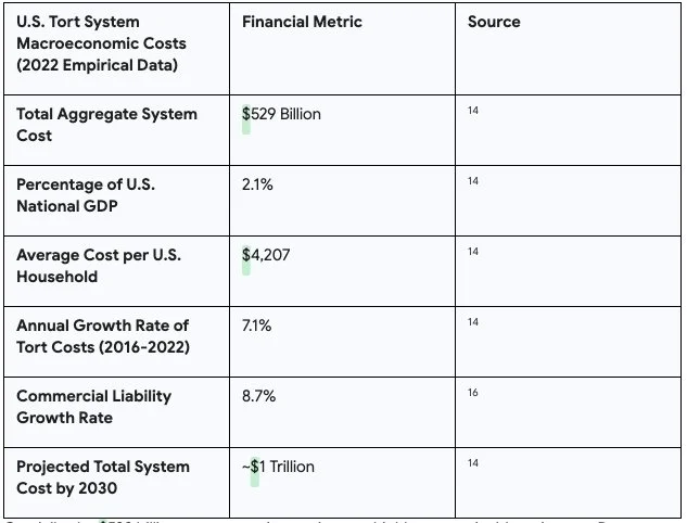 Tort Costs in America: An Empirical Analysis of Costs and Compensation of the U.S. Tort System - ILR - Institute for Legal Reform, accessed April 1, 2026, https://instituteforlegalreform.com/research/tort-costs-in-america-an-empirical-analysis-of-costs-and-compensation-of-the-u-s-tort-system/